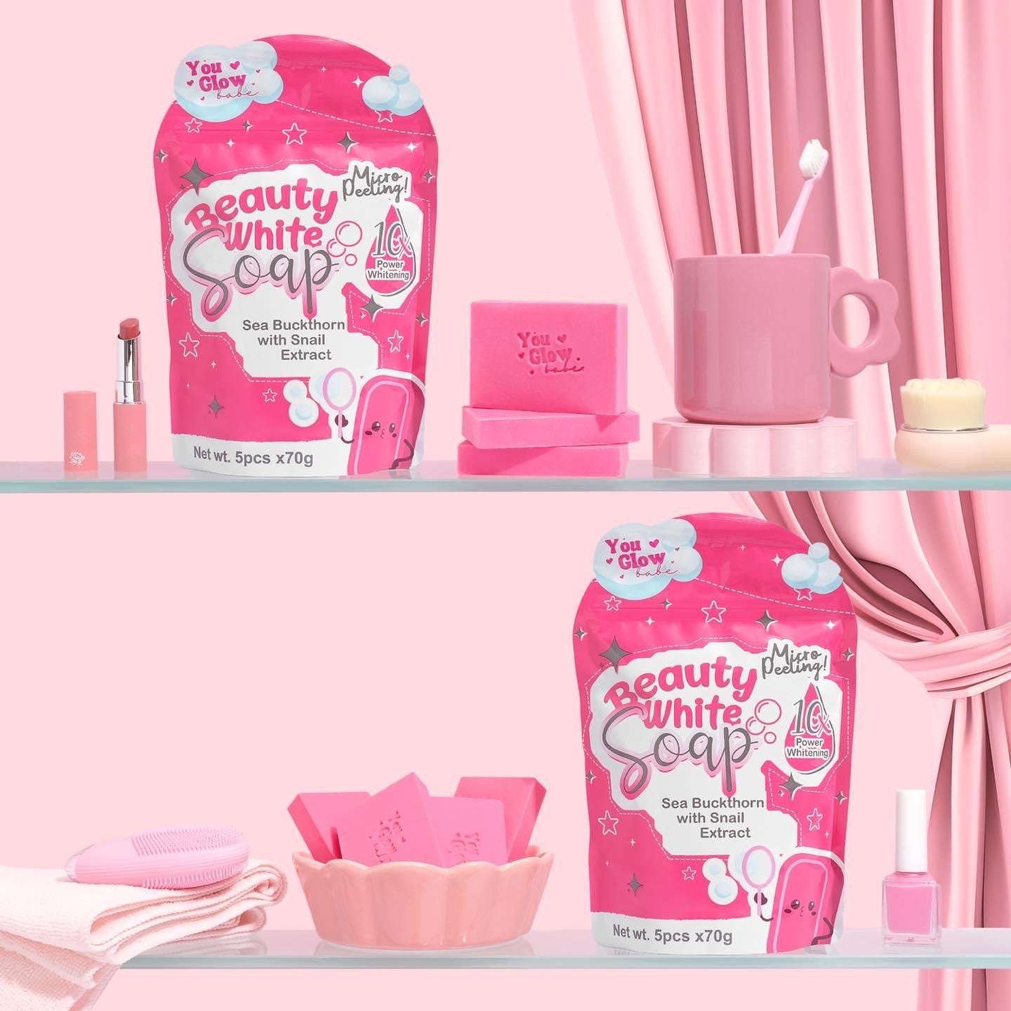 You Bright Glow Beauty White Soap Micro Peeling 10x Power Whitening 70g (5 Bars Per Pouch)