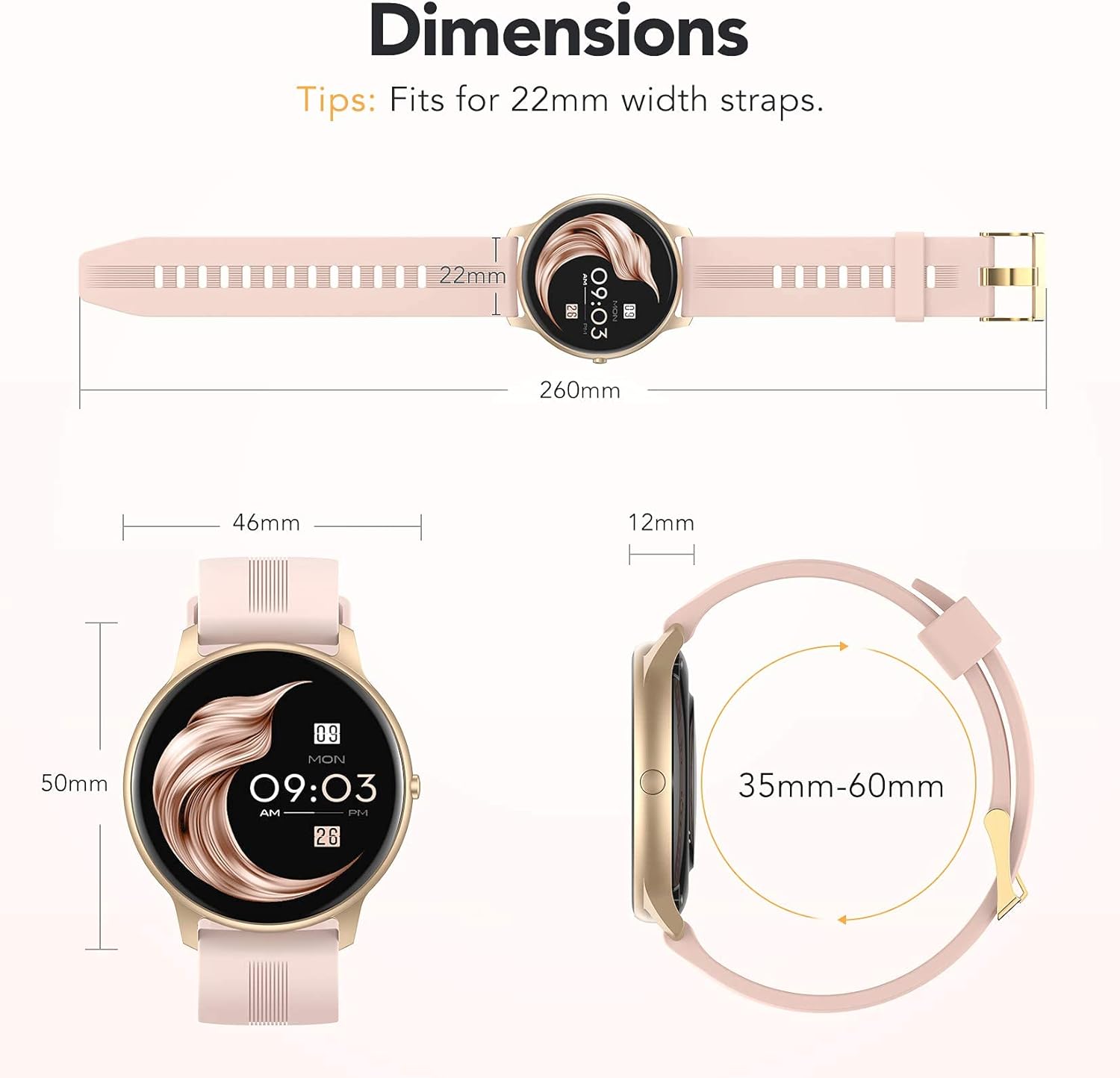 - Versatile Functions: Features include alarm clock, camera control, female health tracking, weather updates, music control, stopwatch, timer, and raise to wake. It's more than just a watch; it's a lifestyle assistant.